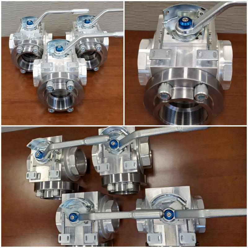 3″ Low Pressure 3-Way Diverter Valves, all equipped with a locking device and dual limit switch brackets to meet a customer’s specific requirement.